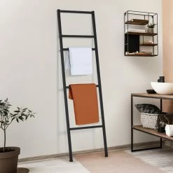 Nouveau 🥰 IDMARKET Porte-serviettes échelle 5 niveaux DALLAS métal noir design industriel 🔔