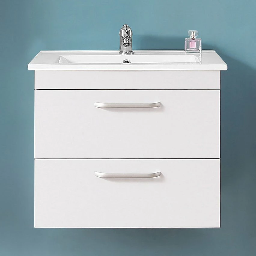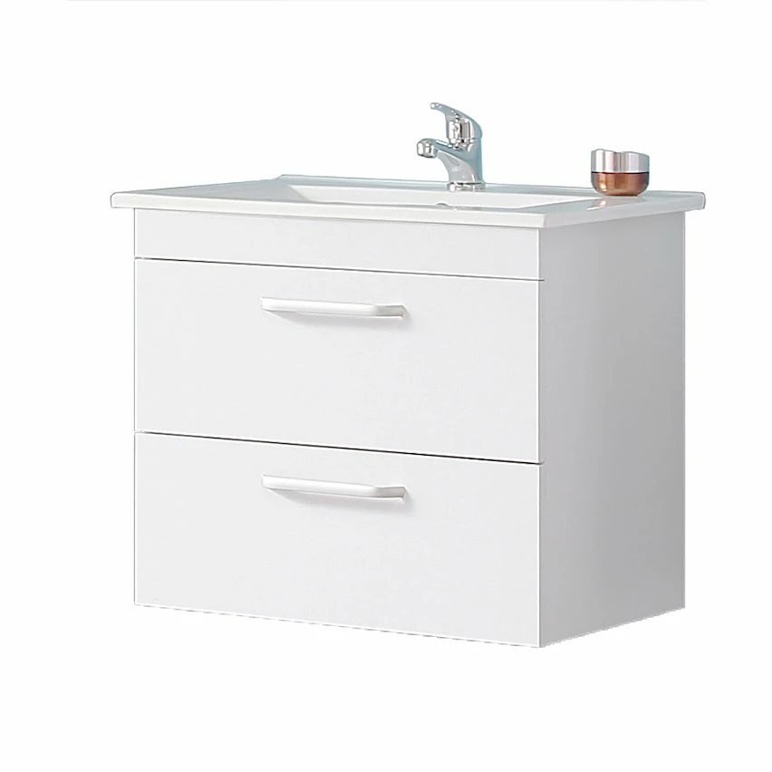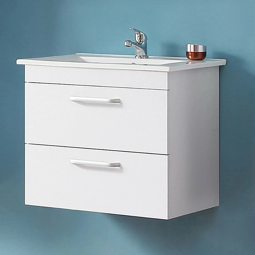 1 meuble en mdF + 1 plan vasque (Robinetterie, vidage et siphon non inclus.)