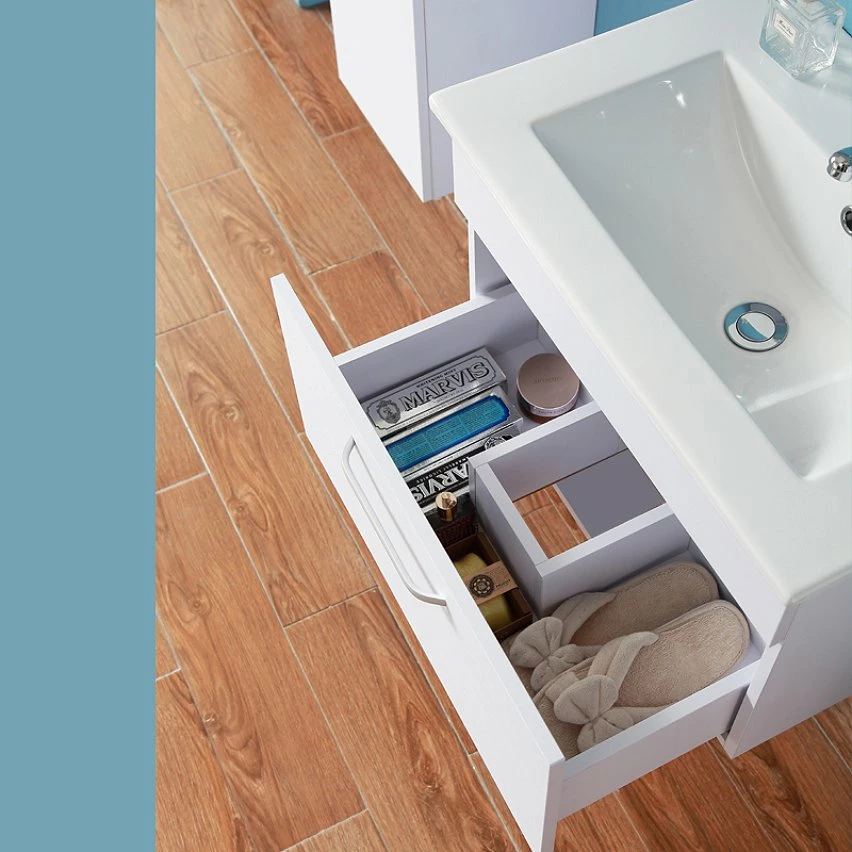 Ce meuble salle de bain est solide et étanche, il est fait par les panneau de bois mdF de plus haute qualité.