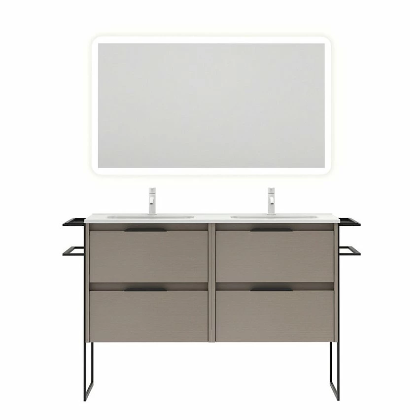 Coupon ✨ Amizuva Ensemble de meuble, vasque et miroir KEIKO avec quatre tiroirs H.56,5 x L.120 x P.46 , effet Fumé sablé ❤️