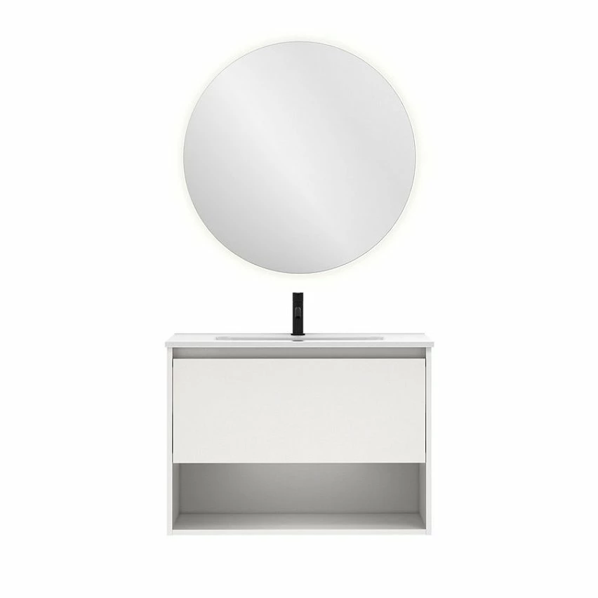 Le moins cher 🥰 Amizuva Ensemble de meuble, vasque et miroir NIWA avec un tiroir et un niche H.56,5 x L.80 x P.46 , effet blanc brillant ✨