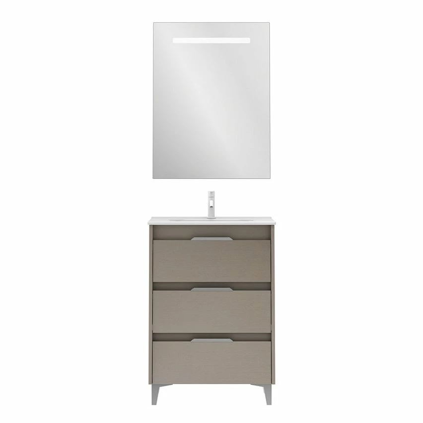 Nouveau ❤️ Amizuva Ensemble de meuble, vasque et miroir SUKI avec tris tiroirs H.74 x L.60 x P.46 , effet Fumé sablé 🎉