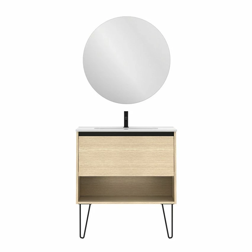 Acheter đ Amizuva Ensemble de meuble, vasque et miroir YOKO avec un tiroir et un niche H.56,5 x L.80 x P.46 , effet ChĂȘne sablĂ© đ