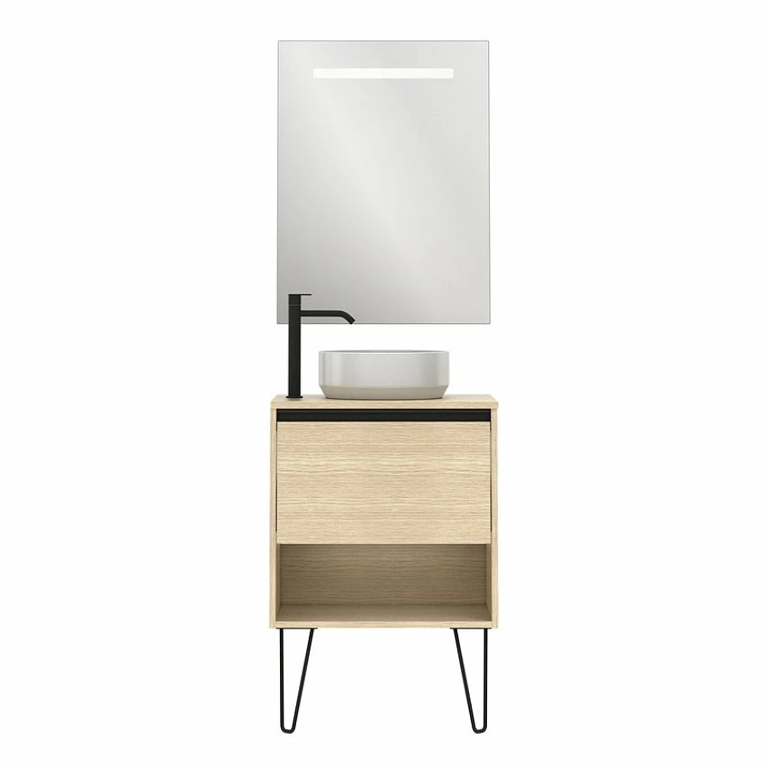 Meilleure affaire đ Amizuva Ensemble de meuble, vasque et miroir YOKO TOPavec un tiroir H.56,5 x L.60 x P.46 , effet ChĂȘne sablĂ© đ