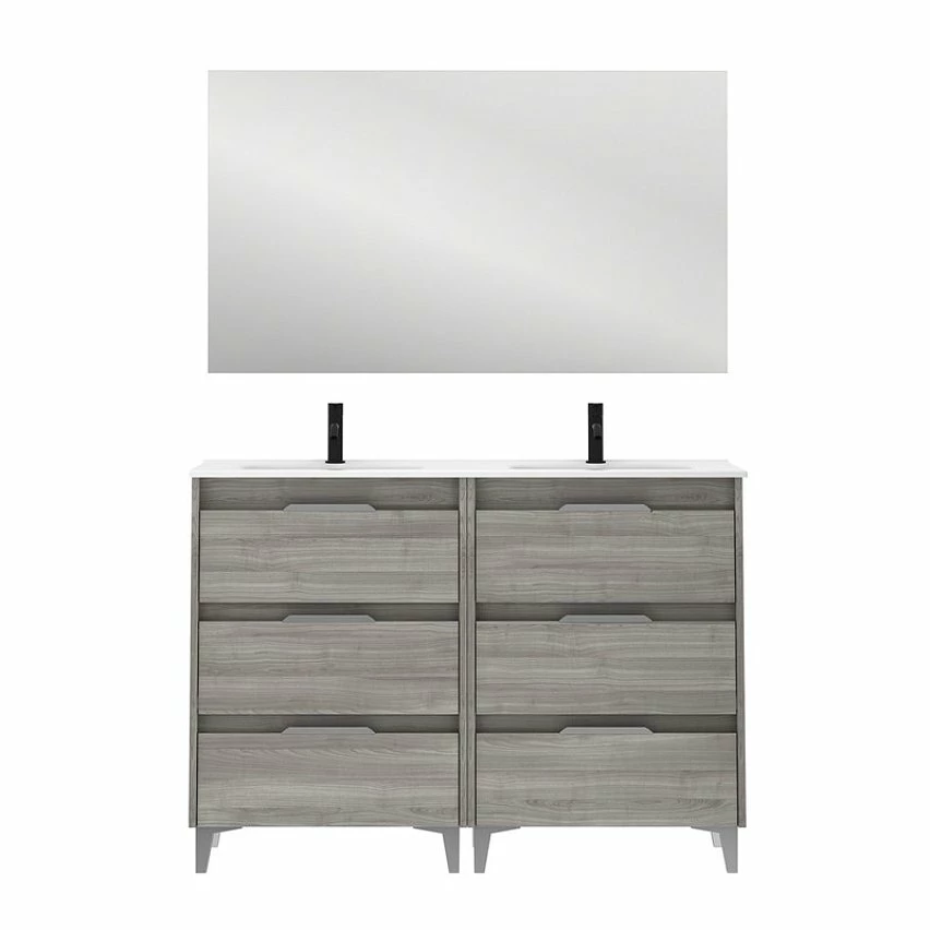Meilleur prix 👏 Amizuva Meuble double vasque SUKI avec six tiroirs H.74 x L.120 x P.46 , effet Gris sablé | Il comprend la vasque en céramique 🛒