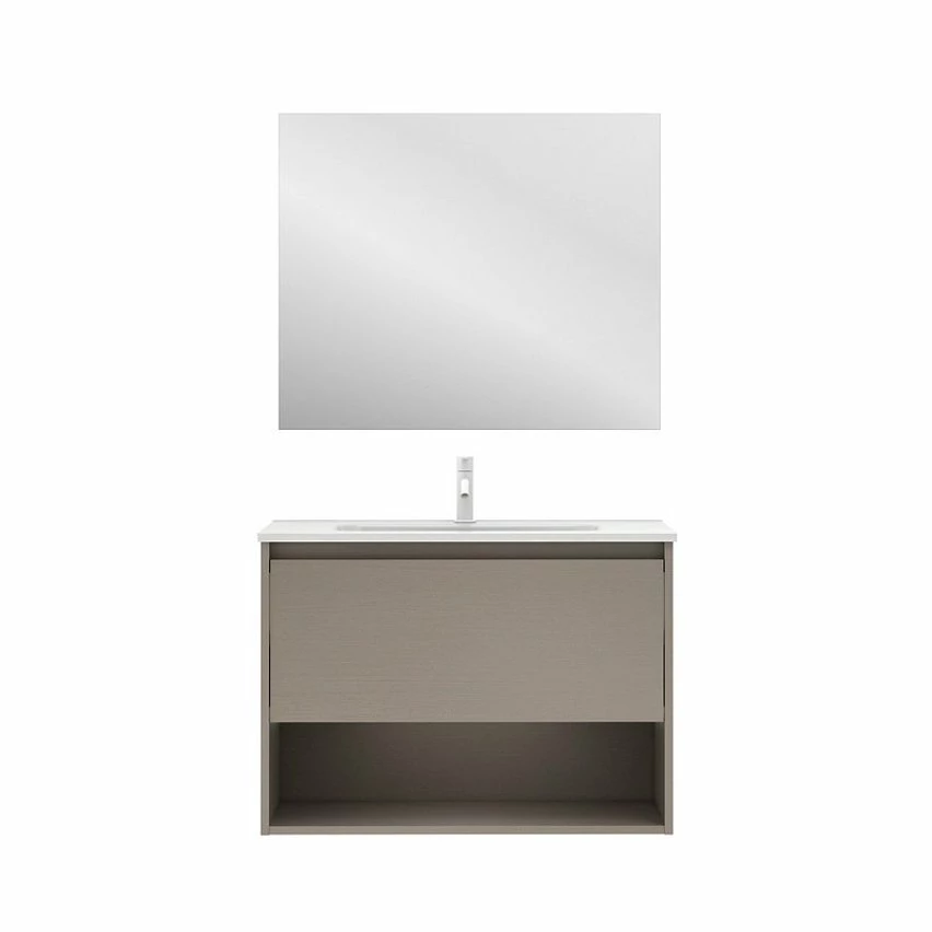 Promo ⭐ Amizuva Meuble simple vasque NIWA avec un tiroir et un niche H.56,5 x L.80 x P.46 , effet Fumé sablé | Il comprend la vasque en céramique 💯