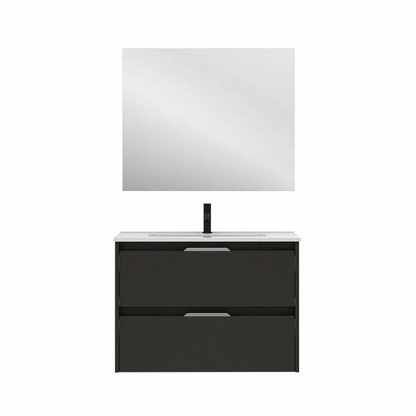 Top 10 ⌛ Amizuva Meuble simple vasque SUKI avec deux tiroirs H.56,5 x L.80 x P.46 , effet Anthracite brillant | Il comprend la vasque en céramique 🌟