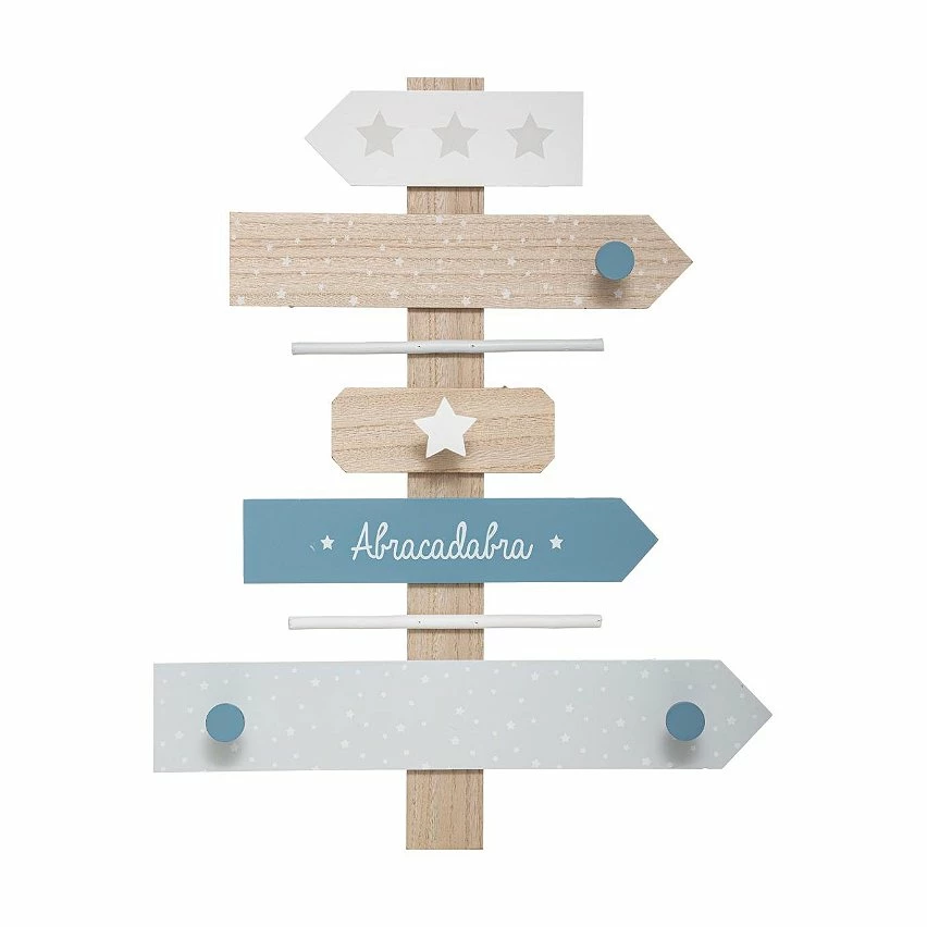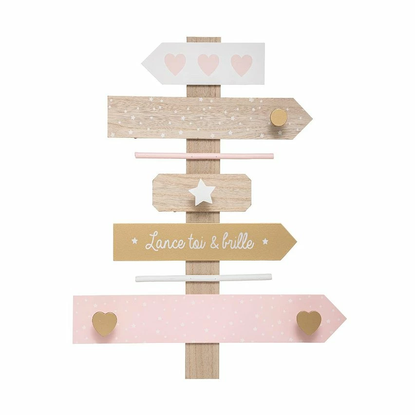 Patère Enfant Pancarte Rose 4 crochets en Bois 40 x 50 cm —
