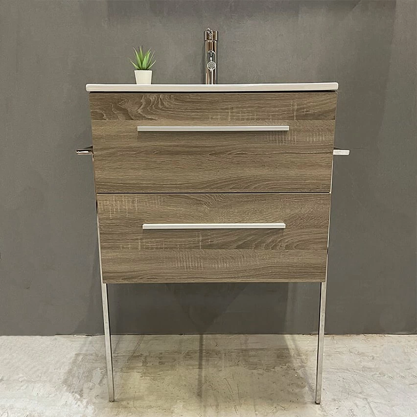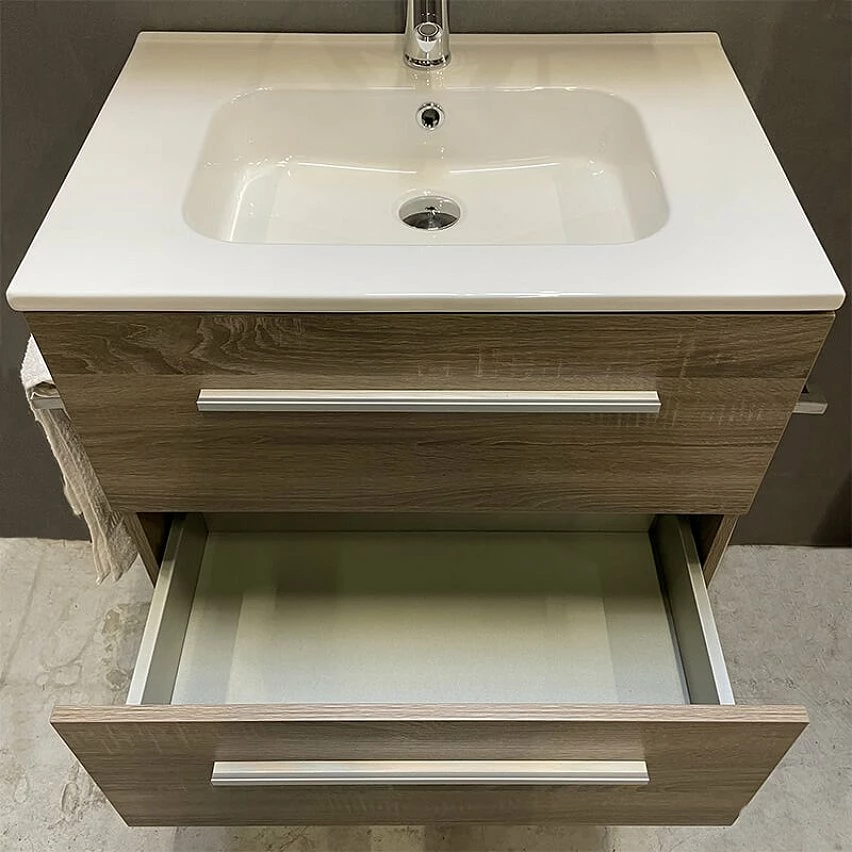 Vous recherchez un petit modèle de meuble à installer dans votre salle de bains? Nous vous proposons le meuble à suspendre 65 cm de la collection Beop de chez ByCA. Découvrez ce modèle compact incontournable moderne et tendance Beop. Il dispose de plusieurs rangements et sera être très fonctionnel avec ses deux tiroirs qui vous permettront de ranger l’ensemble de vos accessoires et produits de beauté du quotidien. Très compact, il mesure 65 cm et permet d’être suspendu très facilement grâce à ses fixations murales fournies. Son design épuré et sa couleur chêne grisé s’intégrera parfaitement dans votre pièce d’eau.