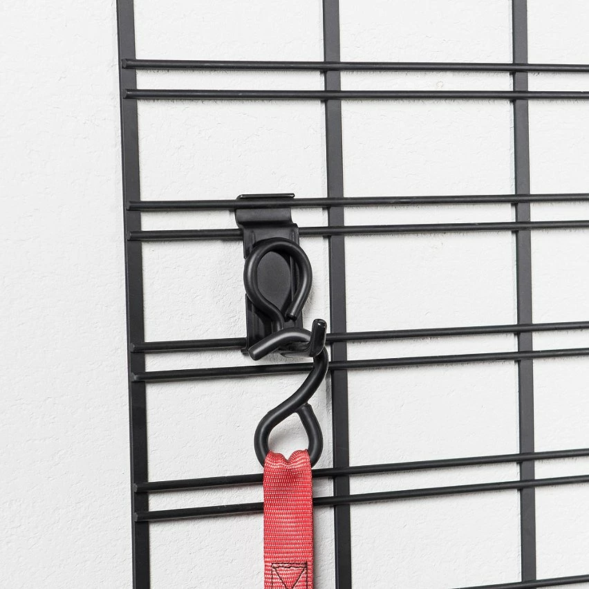 Ce crochet en métal avec revêtement antiglisse se clipse d’un geste sur la grille murale ou sur une crémaillère Walltech. Le système Walltech permet de profiter des murs pour organiser des rangements pratiques et accessibles sans empiéter sur l’espace au sol. Particulièrement adapté au rangement des pièces techniques comme la cuisine, le garage ou la buanderie, Walltech facilite l’organisation de la maison au quotidien. Selon la pièce dans laquelle vous installerez votre espace de rangement Walltech, ce crochet double incurvé vous permettra de suspendre la table à repasser, des outils ou des objets volumineux puisqu’il peut supporter jusqu’à 25 kg.