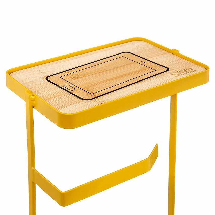 Alliez l’esthétique et le pratique grâce à ce dérouleur WC avec réserve et support téléphone Modern coloris jaune moutarde en métal d’un design très contemporain.