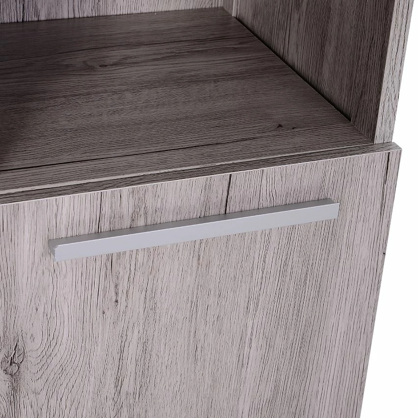 – Revêtement mélaminé coloris imitation bois gris avec veinage qui sublimera votre pièce d’eau