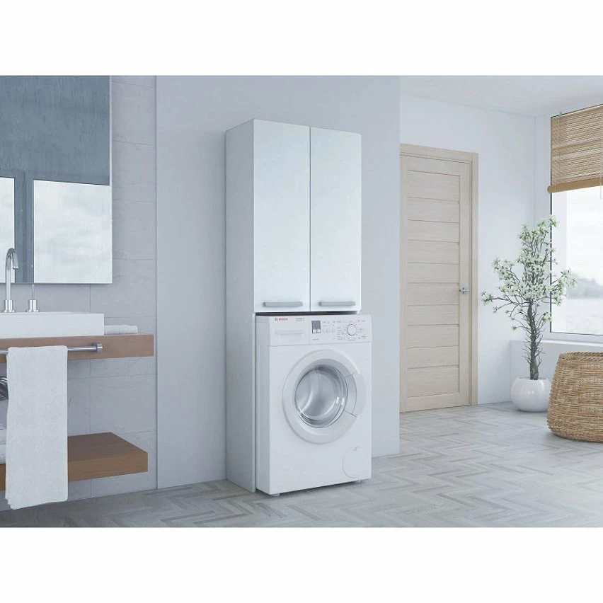 Nouveau ❤️ Hucoco COMO – Meuble pour machine à laver style moderne – 183x64x30 – 2 portes+4 étagères – Blanc ❤️