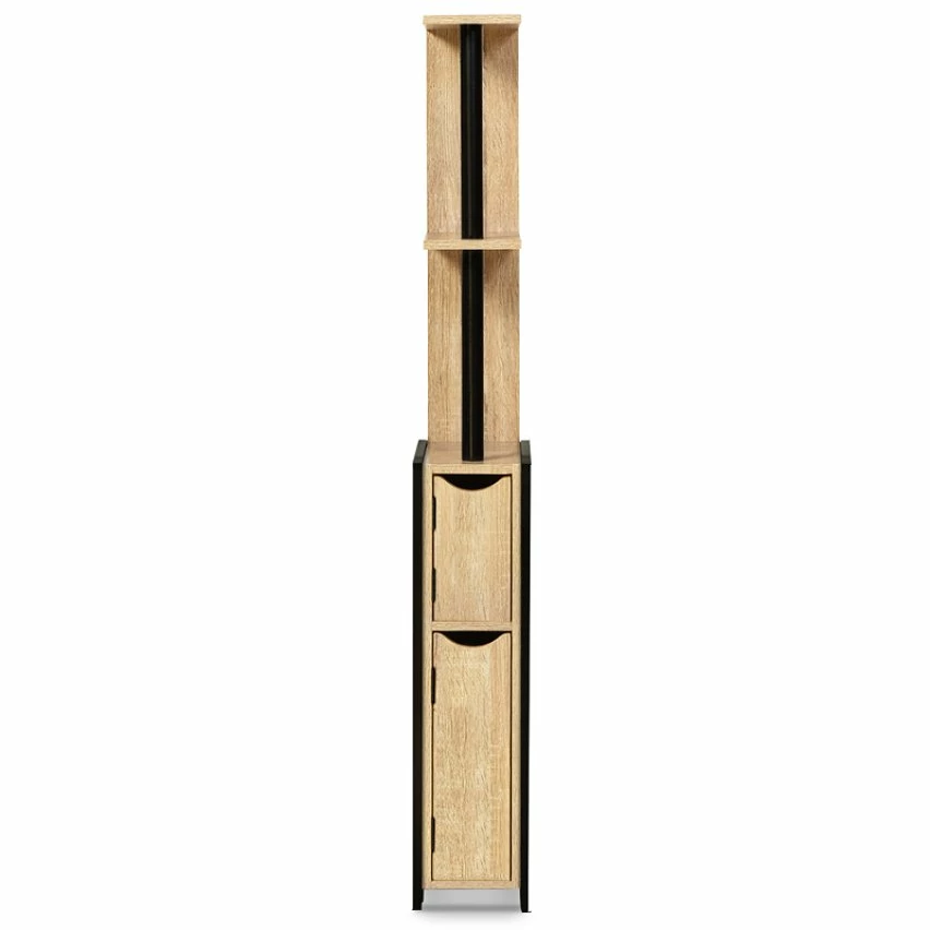 Descriptif du meuble WC 2 portes avec étagères DETROITDonnez un effet industriel et optimisez le rangement de votre pièce d’eau avec notre meuble WC DETROIT 2 portes avec étagères. Son style moderne et ses lignes sobres créeront une ambiance chaleureuse et un esprit “factory” très tendance !Le mélange entre le coloris naturel du bois et le noir de sa structure en métal apportera une touche industrielle pour un esprit loft à votre intérieur.Spécialement pensé pour aménager les petits espaces comme des toilettes, une salle de bains ou une buanderie, ce meuble DETROIT maximisera le rangement de votre pièce tout en vous permettant de gagner en surface au sol grâce à ses dimensions ultra compactes. Ses 3 étagères (composées de 2 tablettes) et ses 2 placards confèrent à ce meuble au design urbain plein d’atouts de rangement ! Dans les 2 placards, vous pourrez ranger en toute discrétion vos produits les moins esthétiques comme les rouleaux de papier toilette, les produits d’entretien…La matière et la couleur des étagères en particules de bois (PB épaisseur 1,2 cm) lui apportent une véritable authenticité. La structure du meuble, en métal noir (épaisseur des tubes 1,6 cm x 1,6 cm), lui apporte stabilité et solidité. Ce nouveau modèle au design industriel bi-matière bois et métal est LA solution pour tout ranger à portée de main même dans les petits espaces et apporter une vraie touche déco à votre intérieur !Dimensions meuble WC 2 portesDimensions globales : Longueur 18 cm x largeur 30 cm x Hauteur 119 cmDimensions des 2 compartiments fermés :Placard du haut : Longueur 12,5 cm x largeur 29 cm x Hauteur 19 cmPlacard du bas : Longueur 12,5 cm x largeur 29 cm x Hauteur 36,5 cmRetrouver l’ensemble de nos meubles WC ainsi que notre collection d’ameublement industrielle sur notre boutique en ligne !