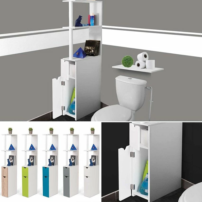 Optimisez votre rangement dans vos WC ou salle de bain grâce à ce meuble très compact en bois mélaminé tout blanc.Dimensions : largeur 15,2 cm x profondeur 29,8 cm x hauteur 118 cm, 2 portes à l’avant + 3 niveaux (avec 2 étagères), partie inférieure 2 placards 1 grand + 1 petit pour une grande capacité de rangement.Coloris blanc5 coloris disponibles sur notre boutique en ligne pour ce modèle 2 portes: BLEUHETREBLANCGRIS