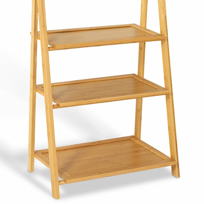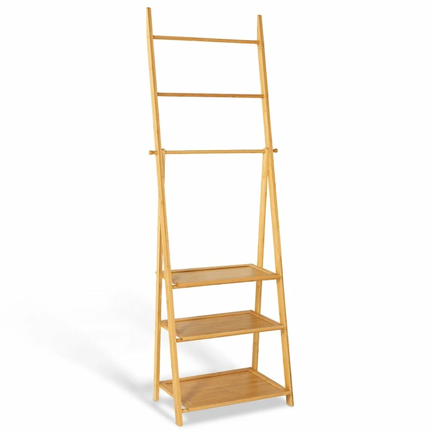 Descriptif du porte serviettes bambou LANA 3 étagèresOptimisez le rangement de votre pièce d’eau grâce à ce porte-serviettes en bambou LANA. Conçu en bois de bambou au coloris chaud, ce porte-serviette viendra ajouter une touche exotique à votre salle de bain tout en permettant à vos serviettes d’être bien rangées et de sécher rapidement. Spécial petits espaces, il est idéal pour aménager votre pièce d’eau. Facile d’entretien, son matériau écologique résiste naturellement à l’humidité, pour une meilleure longévité.Cette étagère en forme d’échelle offre de nombreuses possibilités de rangement tout en restant peu encombrante dans votre pièce. Conçue tout en hauteur et pliable, gagnez en surface au sol !Doté de 3 barres de séchage, ce meuble permettra à chacun de trouver une place pour faire sécher sa serviette ! 2 patères latérales offrent un espace de séchage supplémentaire pour y suspendre gant de toilette ou serviette à main. Les 3 étagères inférieures sont idéales pour ranger produits de toilette ou d’entretien et serviettes supplémentaires à portée de main !Apportez style et rangement à votre pièce d’eau avec ce porte-serviettes 3 étagères gain de place en bambou !Dimensions du porte-serviettes LANADimensions globales : Longueur 53 cm x largeur 31 cm x Hauteur 152 cmÀ fixer au mur pour éviter tout risque de basculement.Découvrez aussi l’étagère dessus WC en bambou Maya et l’ensemble de notre gamme bambou pour les pièces d’eau sur notre boutique en ligne !