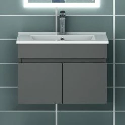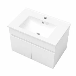 Remise 🎉 AICA Sanitaire meuble avec 2 portes couleur blanc, lavabo leger en céramique 💯
