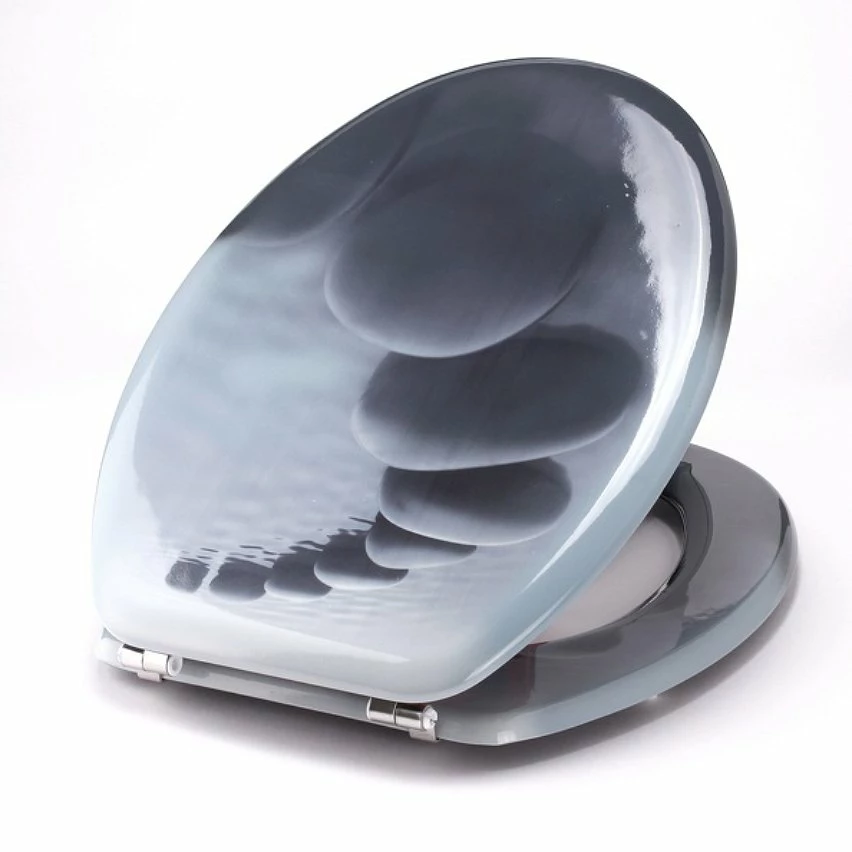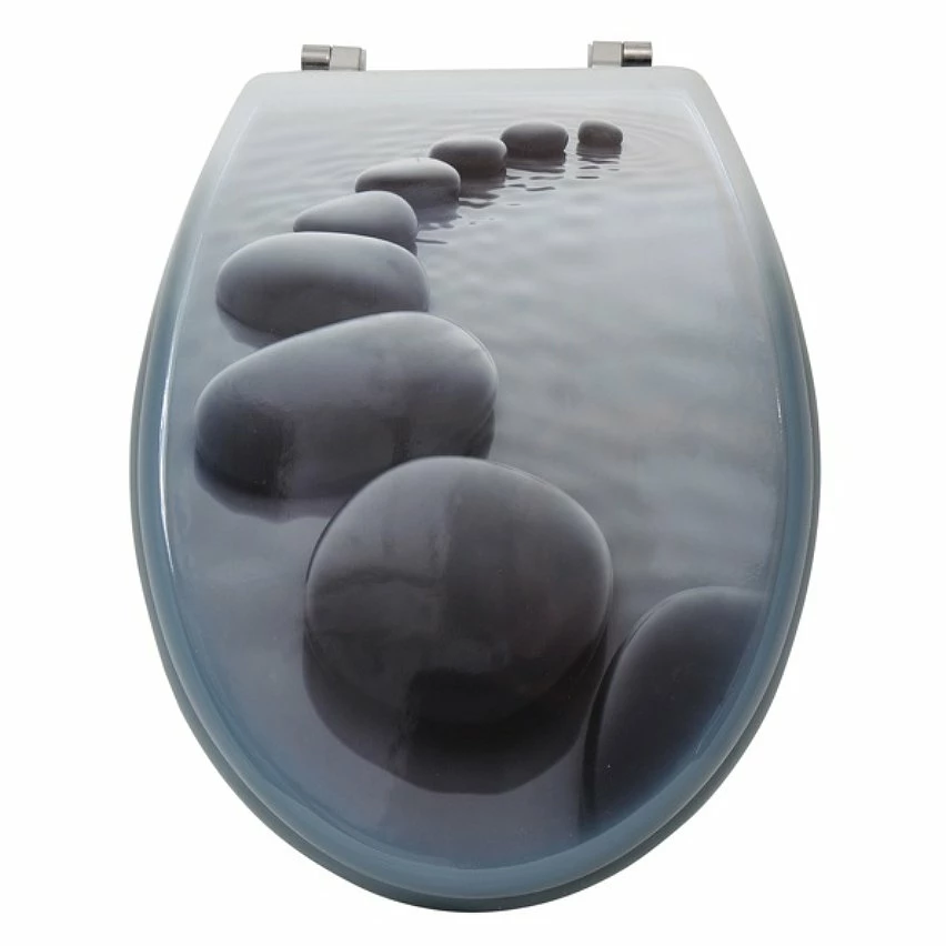 Nouveau 🧨 MSV Abattant WC MDF CHEMIN DE GALETS Gris – Charnières Inox 🎉