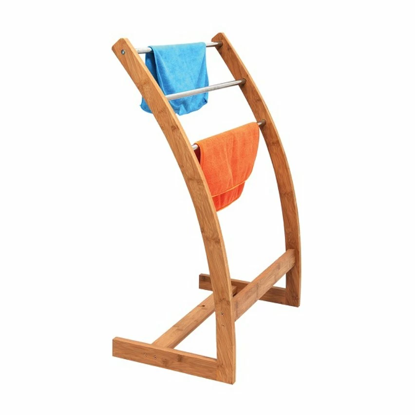 Porte Serviettes de la marque MSV. Indispensable pour votre salle de bain pour y faire sécher vos serviettes, gants de toilette, serviettes à mains ou même en tant que valet de chambre pour y déposer vos vêtements ou votre peignoir. Le séchage de votre linge sera d’autant plus rapide grâce à l’agencement des barreaux et leur espacement favorisant la circulation de l’air. Design moderne qui se fond facilement dans tous les styles d’intérieur. Dimensions: 57x35x85cm Couleur: Bambou Matière: Bambou & Acier Inox