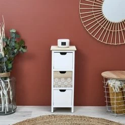 Meilleur prix 👍 The Home Deco Factory Chiffonnier 3 tiroirs Chic naturel et blanc turel clair ✨