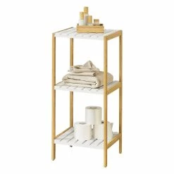 Vente flash 🎁 Étagère de rangement Balsfjord Bambou 33 x 34 x 80 cm Naturel Blanc [en.casa] ⌛