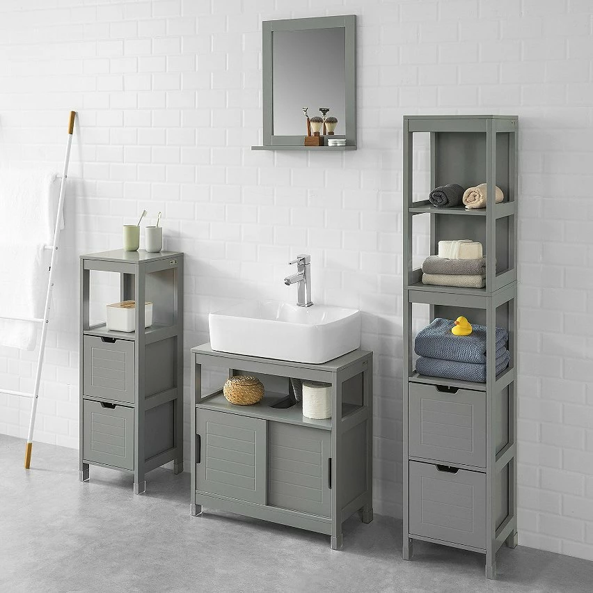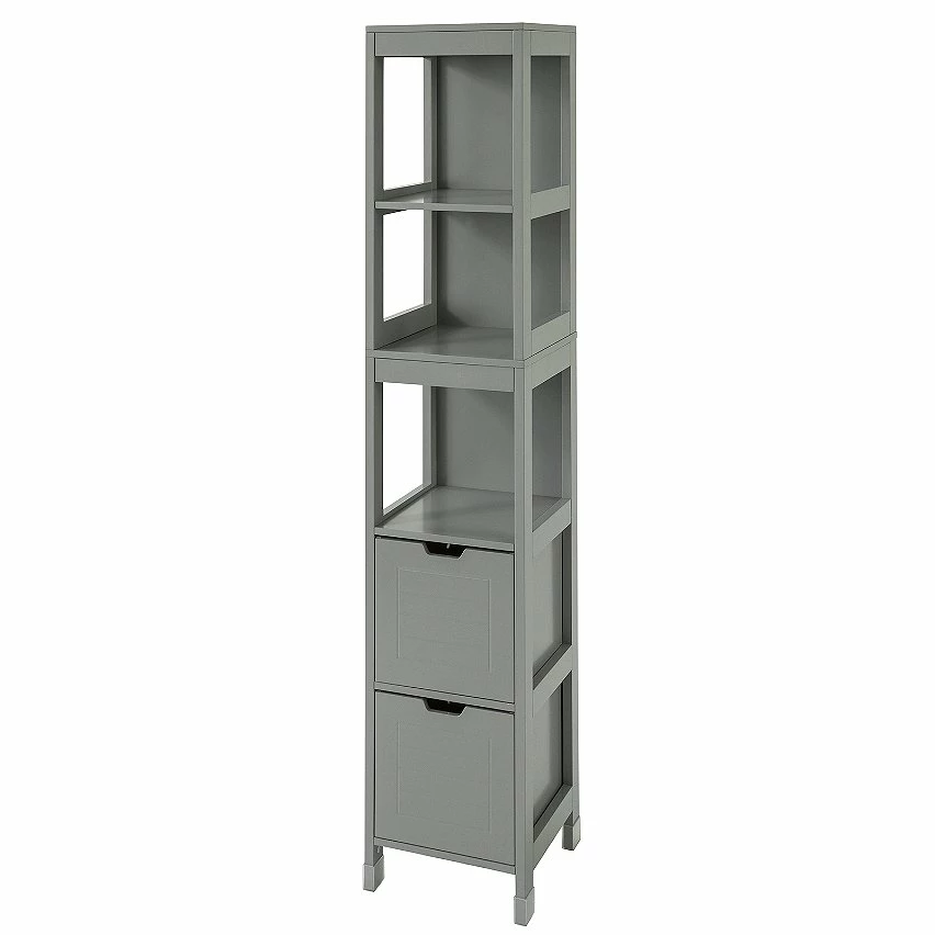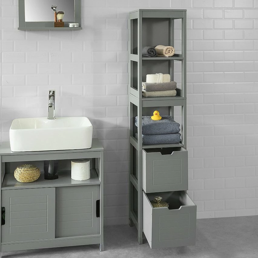 SoBuy FRG126-SG Meuble Colonne de Salle de Bain Armoire haute – 4 étagères et 2 tiroirs -Gris