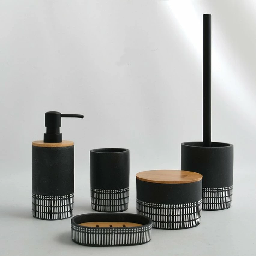 Vente flash 🌟 Spirella Gobelet Polyrésine & Bambou YUMA Gris Foncé & Blanc 🔔