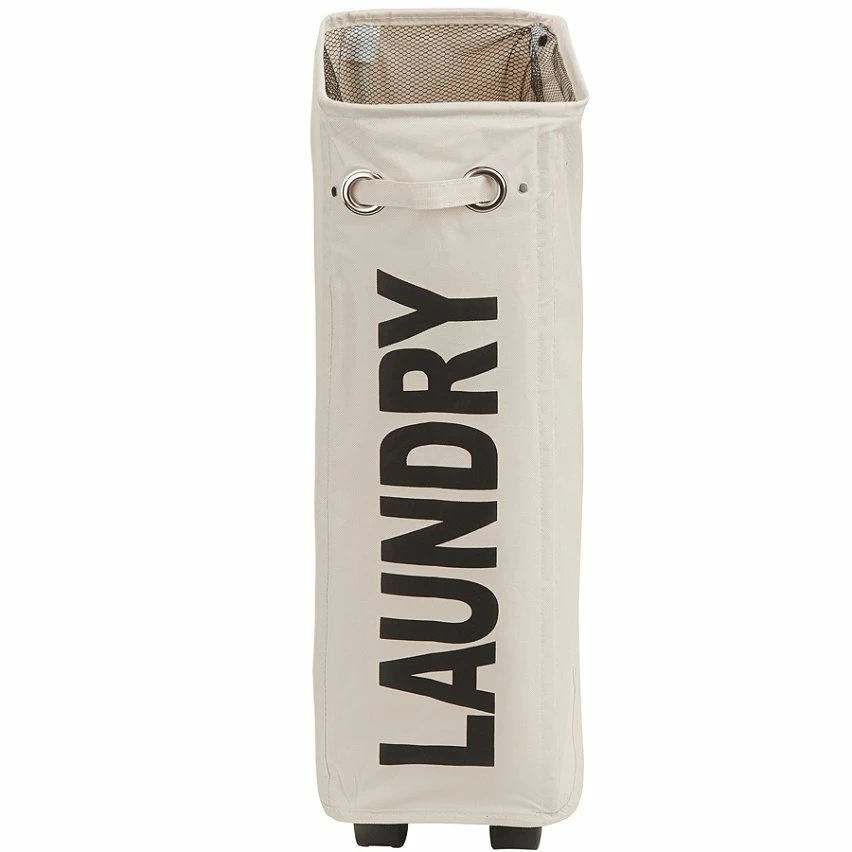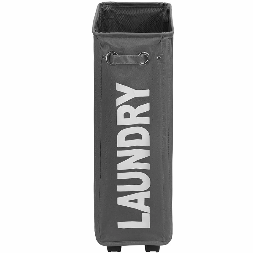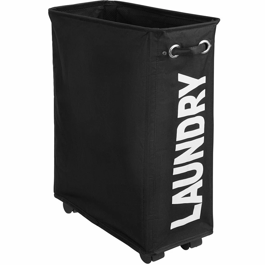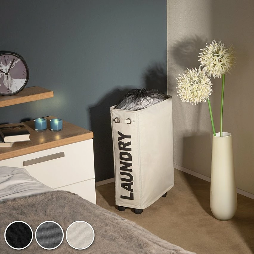 Optimisez le rangement de votre intérieur avec notre panier à linge étroit sur roulettes tectake ! Utilisez les espaces perdus dans votre salle de bains, votre chambre ou votre buanderie pour stocker votre linge sale. Notre corbeille à linge se glisse dans les recoins de votre maison et sait se faire discrète grâce à son design minimaliste. Doté de petites roues, notre bac à linge se glisse facilement sous un plan de travail ou un comptoir. Ses poignées permettent une préhension optimale, vous pouvez même les utiliser pour faire rouler le sac à linge sale jusqu’à votre machine à laver sans effort. Une fois replié, notre panier à linge tectake ne prend que très peu de place. Astuce : achetez-en plusieurs et séparez le linge blanc des couleurs en un clin d’oeil.